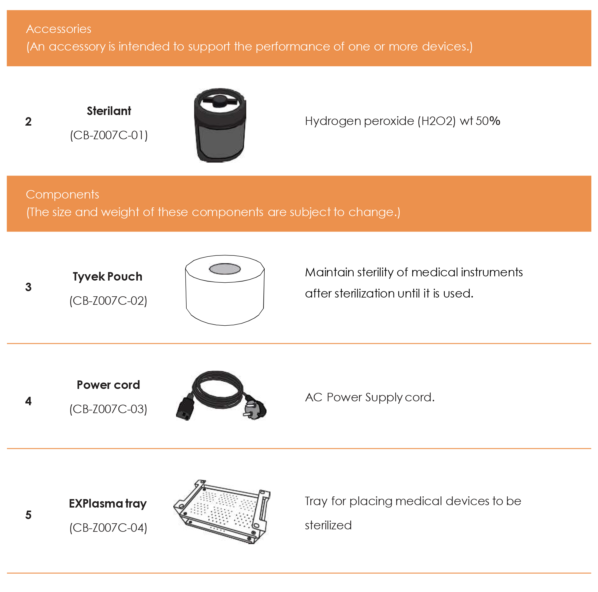 - Sterilant50% solution of hydrogen peroxide (H2O2) wt.